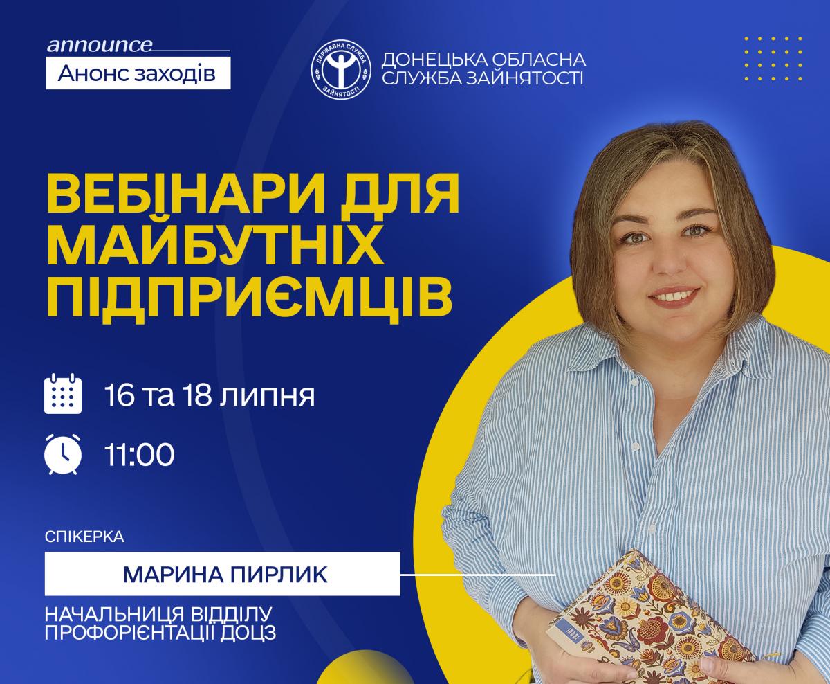 Донецький обласний центр зайнятості запрошує на онлайн-зустрічі для майбутніх підприємців!