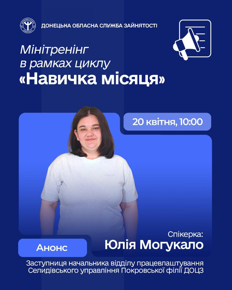 Донецький обласний центр зайнятості запрошує всіх, хто прагне розвивати свої навички спілкування, долучитися до нового мінітренінгу в рамках циклу «Навичка місяця».