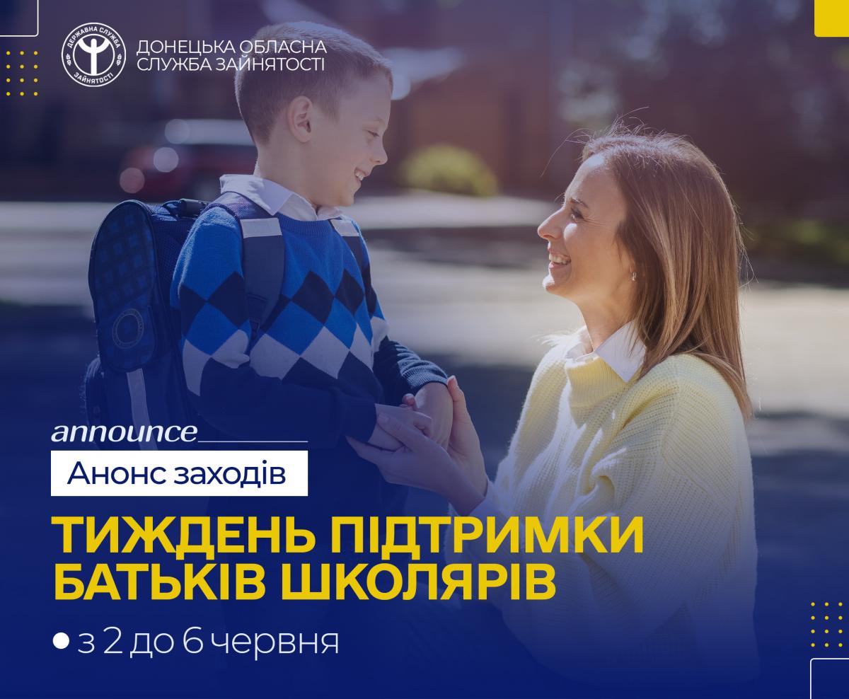 З 2 до 6 червня Донецька обласна служба зайнятості проводить «Тиждень підтримки батьків школярів» — серію безкоштовних заходів, які допоможуть вам краще зрозуміти потреби дитини у виборі професії та стати для неї надійним порадником.