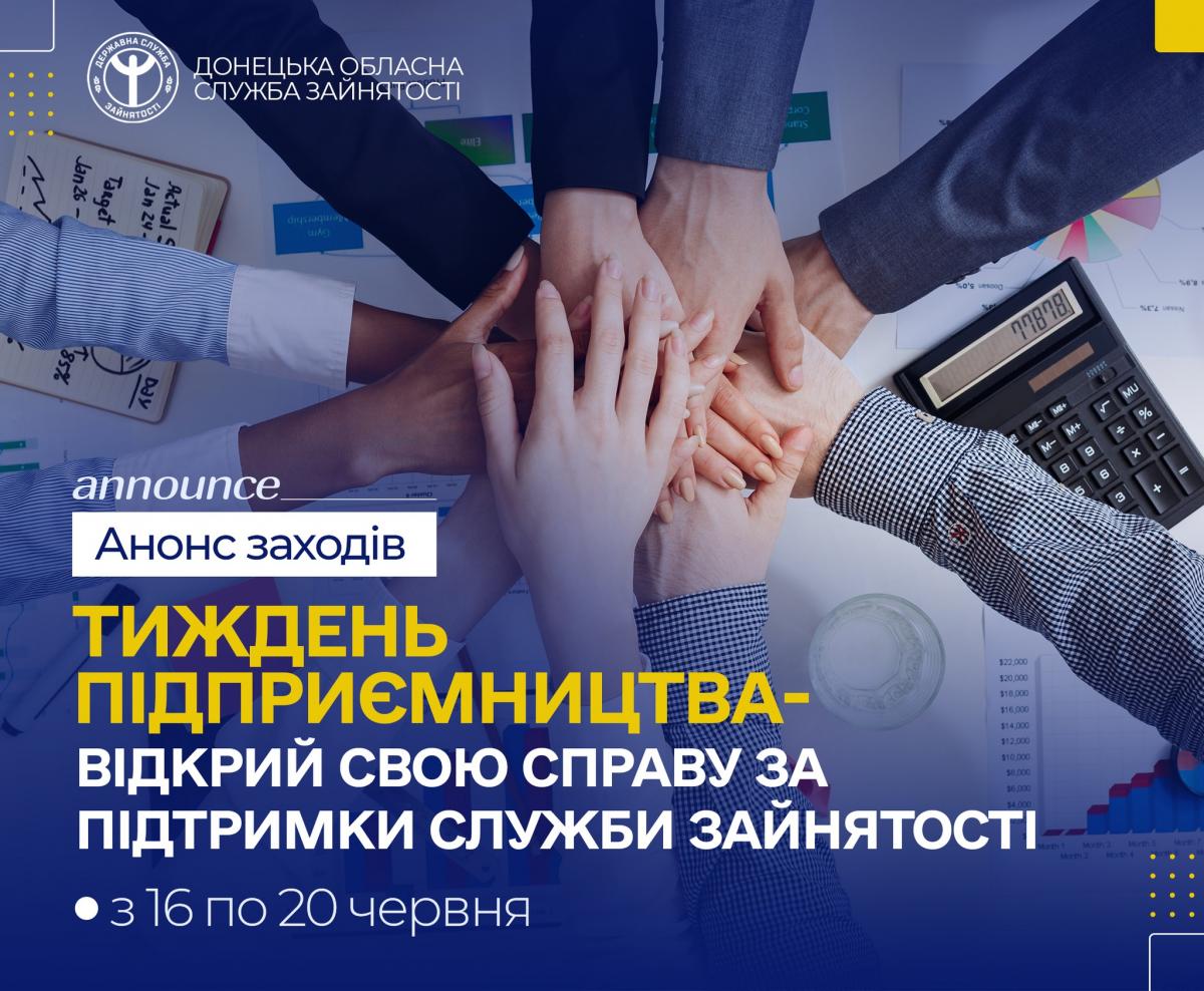 Запрошуємо взяти участь у «Тижні підприємництва» - насиченій програмі вебінарів, тренінгів і презентацій, яка допоможе зробити перші кроки до успішної підприємницької діяльності.