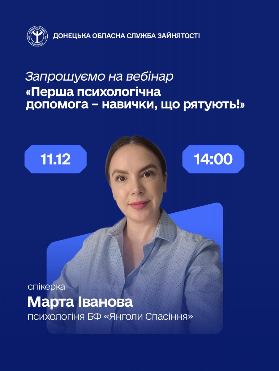 Запрошуємо всіх бажаючих долучитися до онлайн-заходу, який Донецький обласний центр зайнятості проводить у партнерстві з БФ «Янголи Спасіння». Подія спрямована на підтримку ментального та емоційного здоров’я, розвиток важливих життєвих навичок та підвищення обізнаності щодо сучасних соціальних викликів.