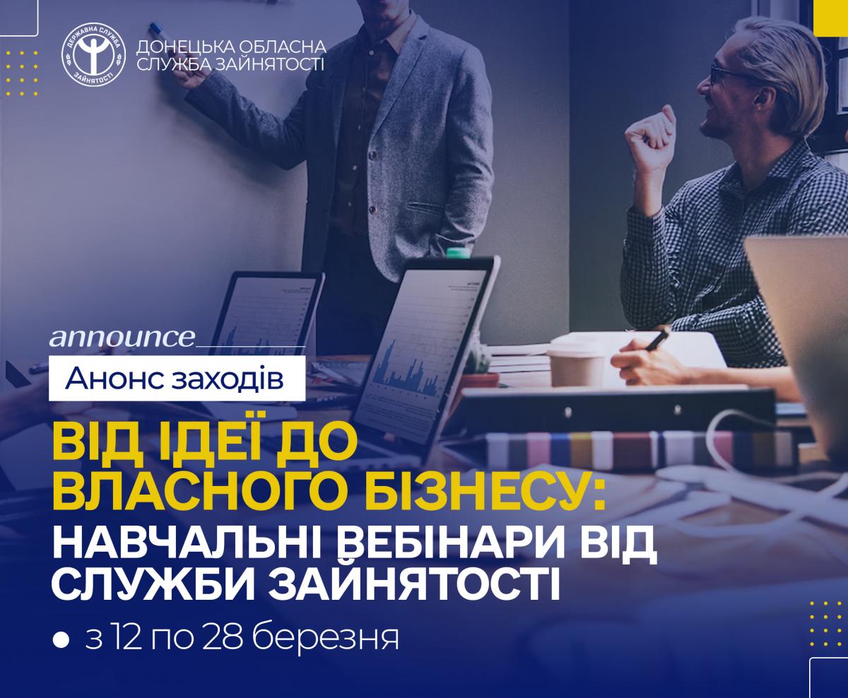 Мрієте про власний бізнес або хочете розширити вже існуючий? Донецький обласний центр зайнятості запрошує вас на серію онлайн-заходів, спрямованих на розвиток підприємницького потенціалу та отримання фінансової підтримки.