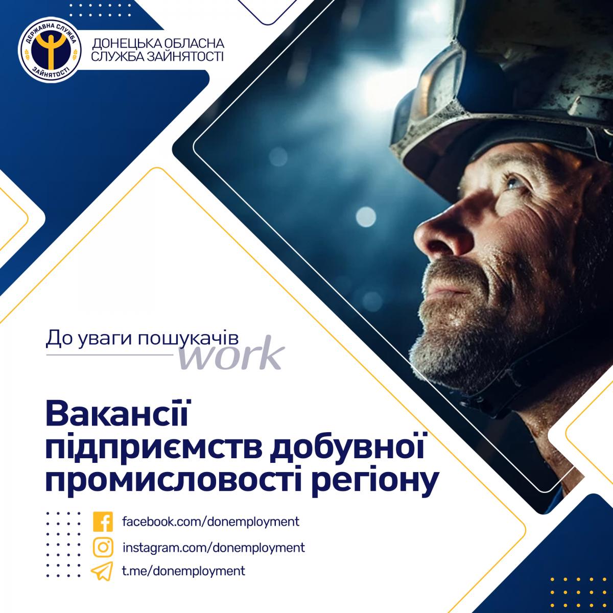 Пропонуємо вашій увазі вакансії підприємств добувної промисловості регіону