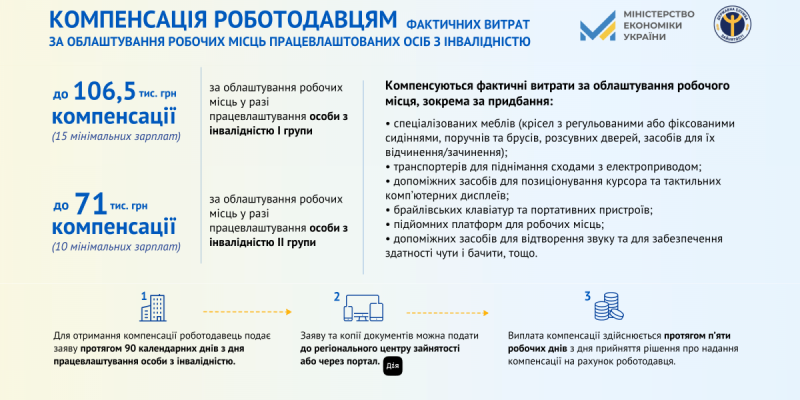 Для сприяння професійній реалізації людей з інвалідністю та усунення бар’єрів на робочому місці служба зайнятості Донеччини реалізує програму компенсації роботодавцям витрат за облаштування робочих місць для працевлаштованих осіб з інвалідністю.