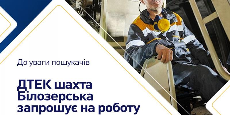 ДТЕК шахта Білозерська - одне з найбільших вугільних підприємств Донбасу. Компанія запрошує на роботу фахівців гірничо-видобувної промисловості.