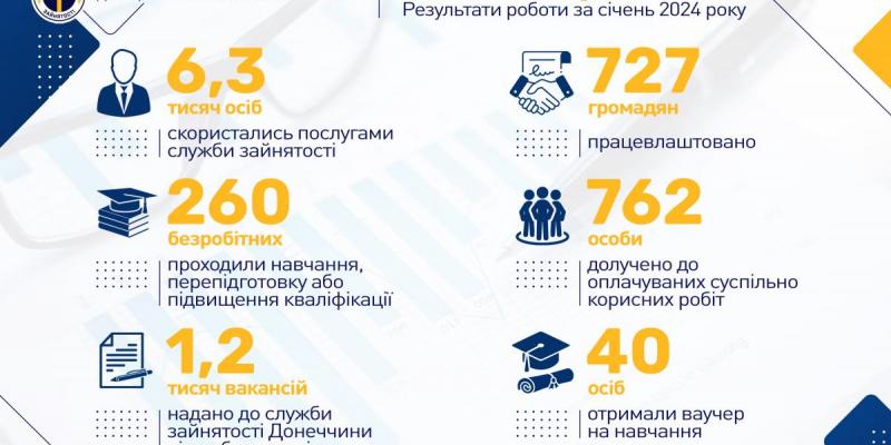 Впродовж січня 2024 року послугами служби зайнятості скористались майже 6,3 тис. громадян.