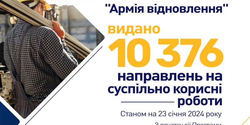 Від початку дії урядової ініціативи з організації оплачуваних суспільно корисних робіт й дотепер 10,4 тис. мешканців Донеччини спрямовано на відбудову 24 територіальних громад,