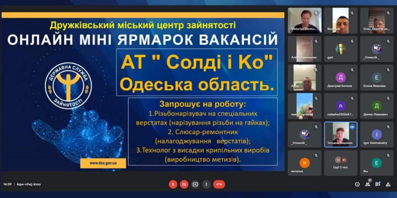 7 вересня фахівці Дружківського міського центру зайнятості разом з представниками ПАТ "СОЛДІ І КО" провели онлайн-мініярмарок вакансій.