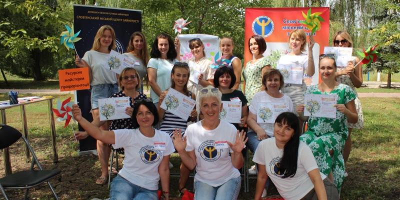 19 серпня фахівці Слов'янський міський центр зайнятості організували в парку «Шовковичному» чергову профорієнтаційну зустріч для освітян в рамках сезонної Ресурсної майстерні профорієнтації на тему: «Мистецтво бути собою як ефективна складова профорієнтаційної роботи»