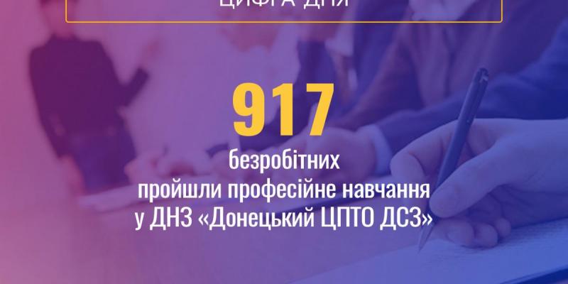 Протягом січня-липня поточного року за направленням Донецької обласної служби зайнятості у ДНЗ «Донецький ЦПТО ДСЗ» професійне навчання, перенавчання та підвищення кваліфікації проходили 917 осіб.