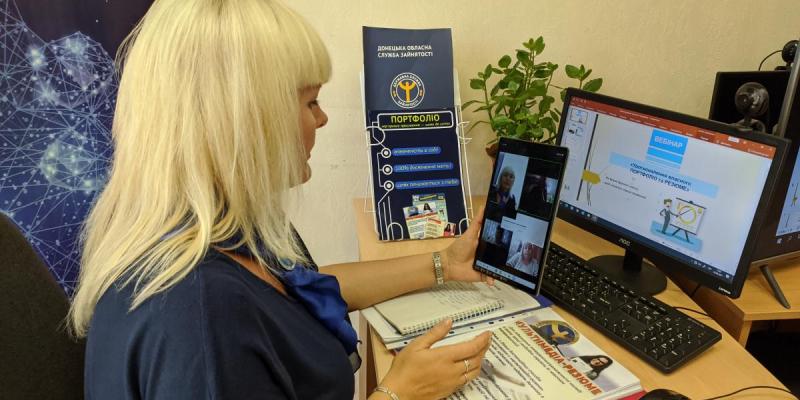 18 серпня в центрі дистанційних комунікацій Бахмутського міського центру зайнятості відбувся вебінар для безробітних. Шукачі роботи опановували сучасну форму самопрезентації - портфоліо кар’єрного просування з відео резюме. Учасники розглянули структуру і особливості складання власного портфоліо з відеорезюме.