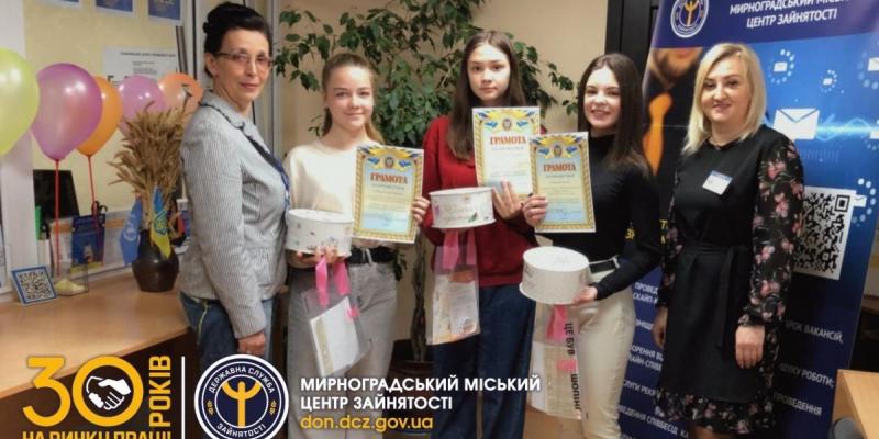 Сьогодні у Мирноградському міському центрі зайнятості відбулось нагородження переможців конкурсу есе на тему «Чи оберу я професію своїх батьків?» в рамках проведення марафону «Весняна Профорієнтація».