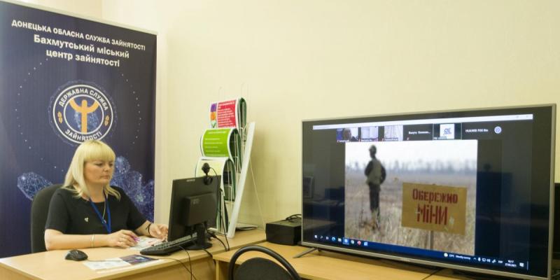 27 травня в центрі дистанційних комунікацій Бахмутського міського центру зайнятості відбувся інформаційний вебінар для безробітних з категорії внутрішньо переміщених осіб. У заході взяла участь представниця міжнародної громадської організації FSD Ukraine Швейцарського фонду з протимінної діяльності пані Ірина.