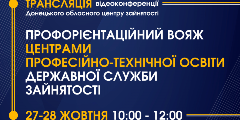 Донецький обласний центр зайнятості проведе інформаційний онлайн захід «Профорієнтаційний вояж центрами професійно-технічної освіти Державної служби зайнятості України».