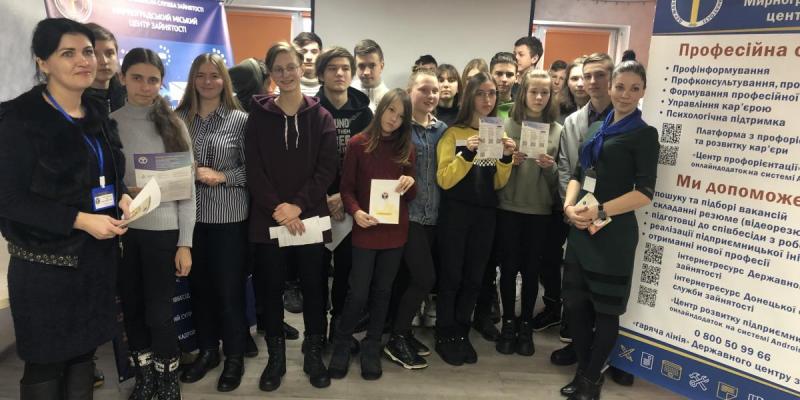 12 лютого фахівці Мирноградського міського центру зайнятості провели профінформаційний урок для учнів 9 класу ЗЗСО № 5 ім. Валерія Даценка