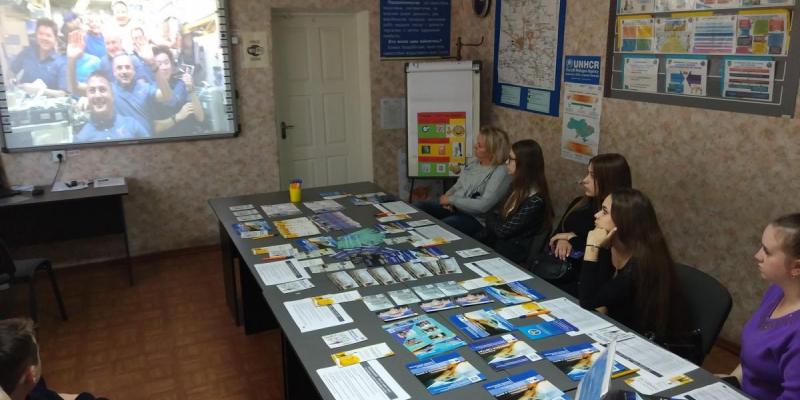 31 жовтня профконсультанти Маріупольського міського центру зайнятості провели профорієнтаційний урок «Я і моя майбутня професія» для школярів 9-11 класів школи №8 смт Сартана на базі Молодіжного центру «Чердак». Захід пройшов одночасно для однокласників, які не змогли бути присутніми в Молодіжному центрі і знаходилися на території школи, за допомогою Skype-зв’язку.