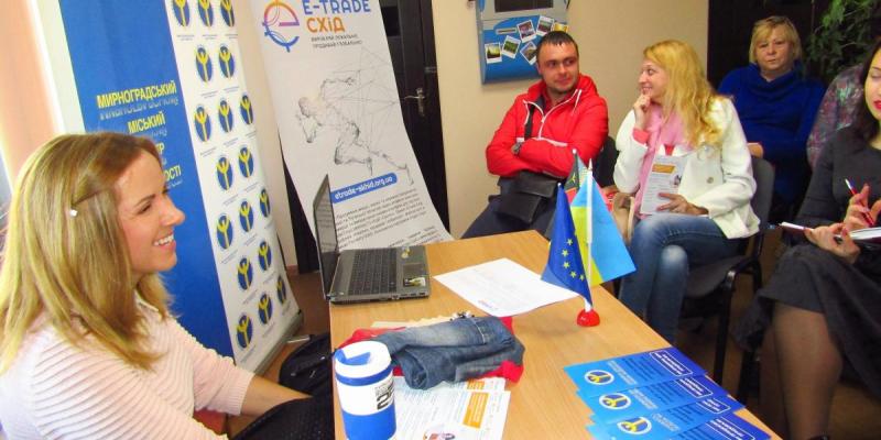 16 жовтня в Консалтинговому центрі Мирноградського міського центру зайнятості відбувся захід для підприємців «Просування мікро-, малих та середніх підприємств Донецької та Луганської областей через розвиток електронної комерції та використання онлайн-платформ для торгівлі». Захід пройшов в рамках проекту «Економічна підтримка Східної України» USAID, якій виконує DAI, в рамках програми USAID Economic Resilience Activity.