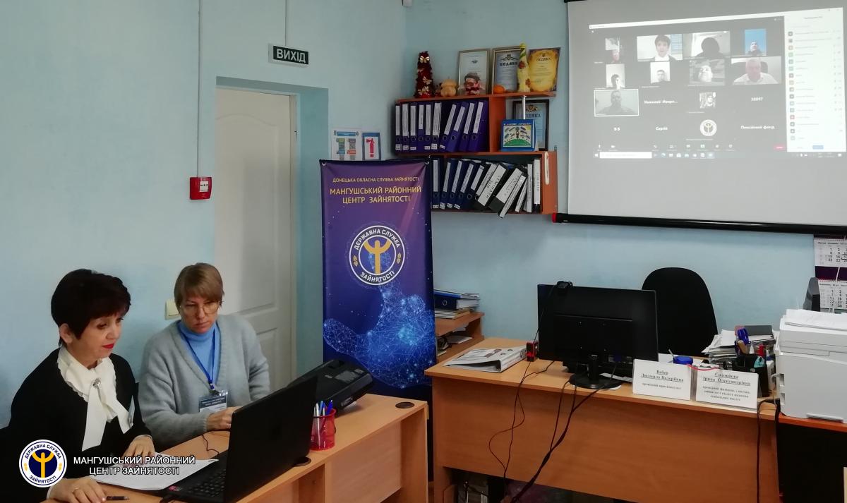 У заході взяли участь представники відділення рекрутингу та комплектування районного центру комплектування та соціальної підтримки Донецького прикордонного загону, Мангушського об’єднаного  управління Пенсійного Фонду України Донецької області, Мангушського бюро з надання правової допомоги та благодійної організації «Парафіяльний благодійний фонд «Карітас Маріуполь». У вебінарі взяли участь 12 безробітних.