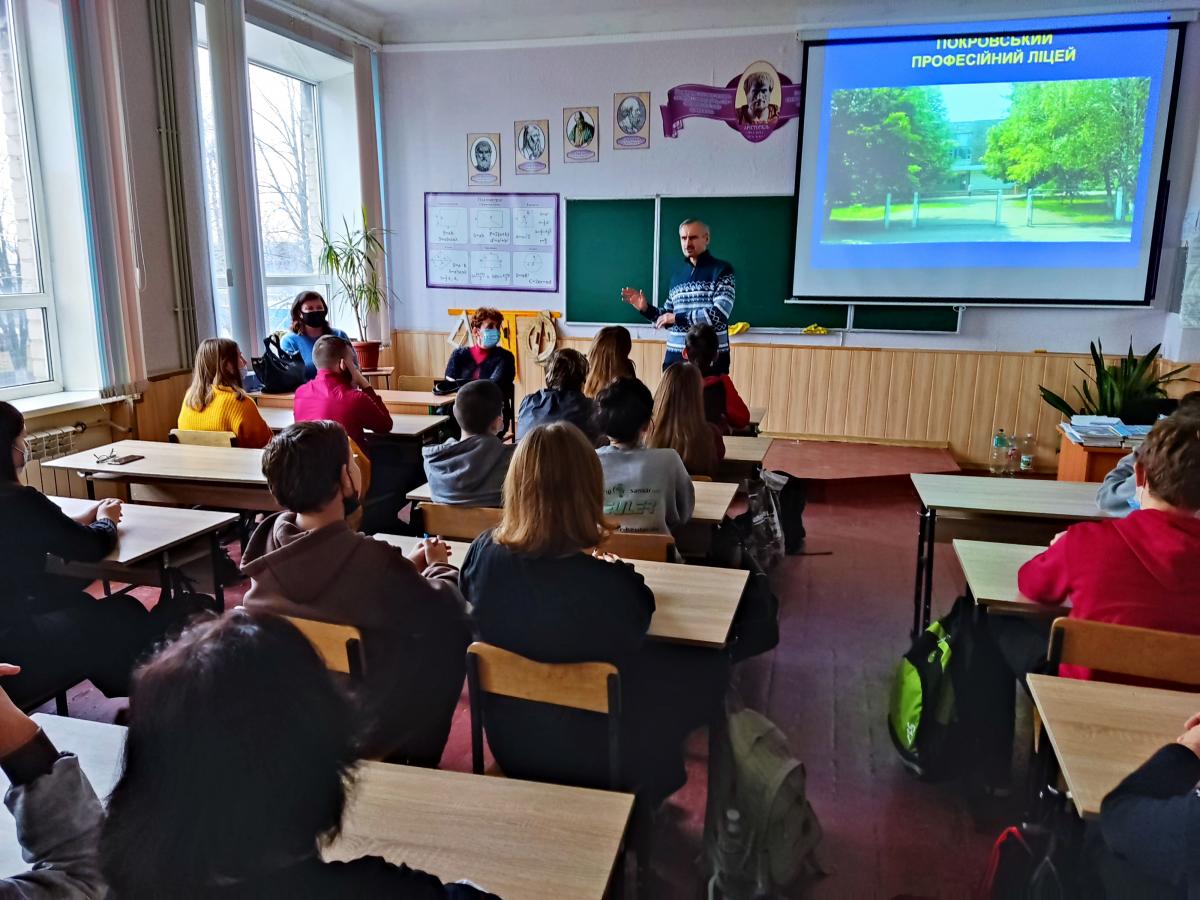 Для майбутніх випускників 9 класу був проведений профорієнтаційний урок на тему "Вибір майбутньої професії залежить від тебе" та презентація Покровського професійного ліцею проведені.