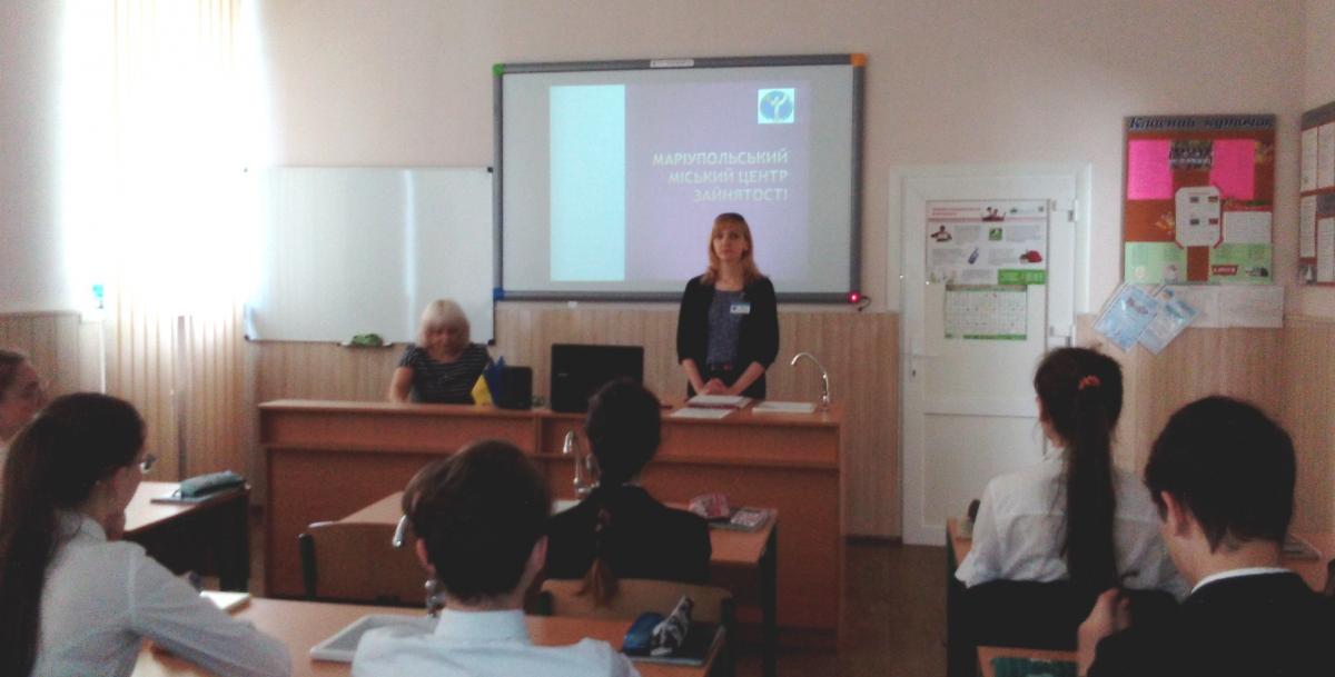 Фахівці служби зайнятості провели профорієнтаційний урок «Майстри-золоті руки» у маріупольському навчальному закладі «Ліцей-школа №14» для учнів 8-х класів.