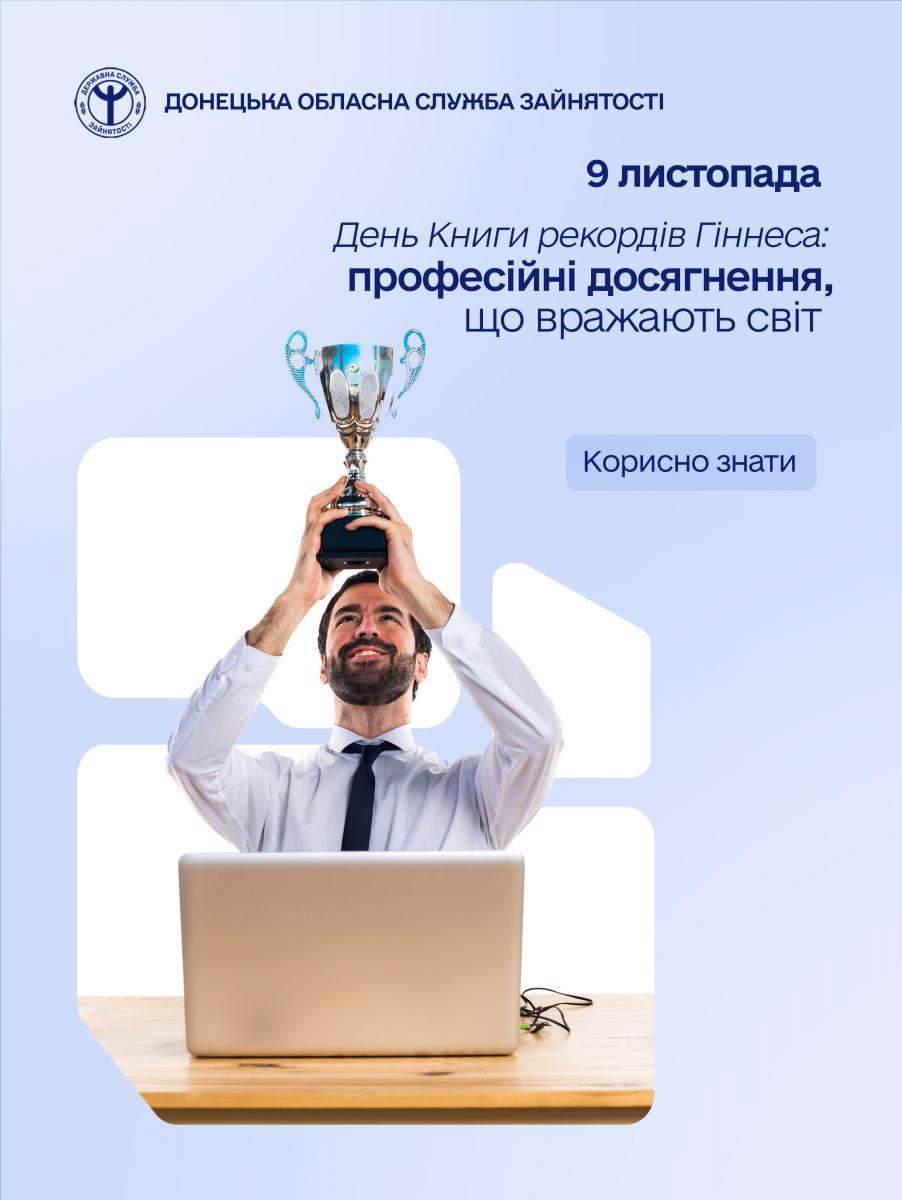 Служба зайнятості Донеччини щодня допомагає людям знайти справу, у якій можна розкрити свій потенціал, набути нових навичок і, можливо, встановити власний рекорд — хай навіть не у Книзі Гіннеса, а у власному житті.