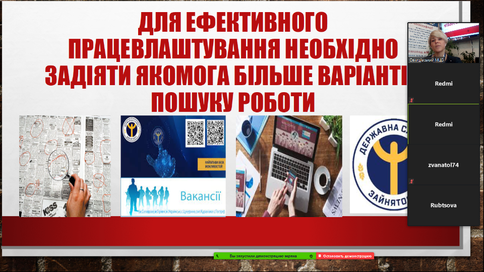 «Пошук роботи - це вміння ефективно використовувати інформацію про вакансії», - розпочала вебінар з техніки пошуку роботи фахівчиня Селидівського міського центру зайнятості Анна Карпенко.