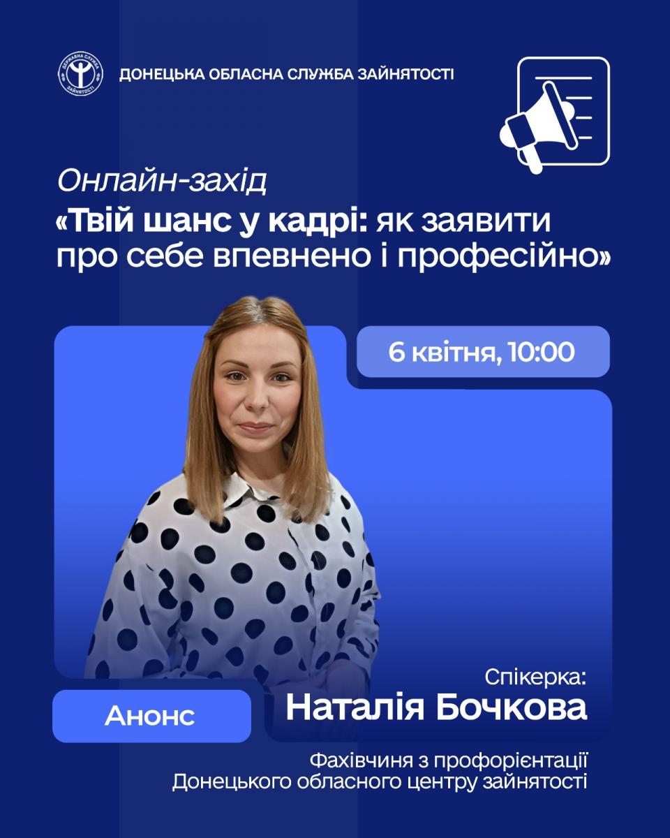 6 квітня 2026 року о 10:00 відбудеться захід «Твій шанс у кадрі: як заявити про себе впевнено і професійно»