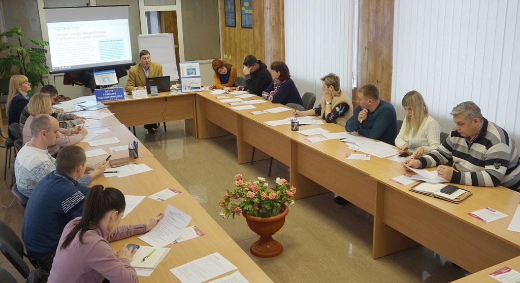 Тренінг з бізнес-імітації провів консультант міжнародної компанії USАID Юрій Тупікало. Протягом заходу учасники вчилися постановці цілей у власному бізнесі, розглядали методи їх реалізації, будували план дій з просування власної справи. Тренер проекту запропонував присутнім гру «Бізнес-трансформація», яка дозволяє поєднати стратегію та бізнес-модель. Працюючи в командах, бахмутські підприємці спробували на практиці провести експрес-аналіз власного бізнесу. В процесі бізнес-гри обговорили базові напрямки фінансування своєї справи.