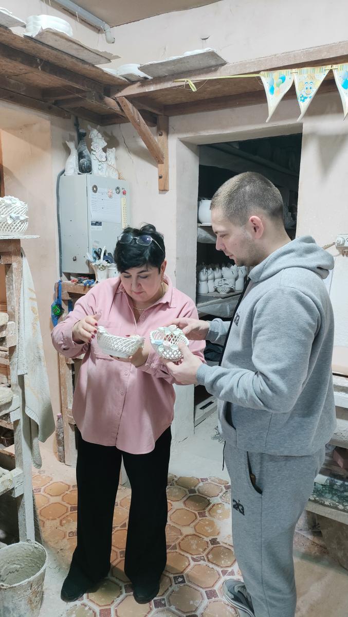 18 грудня директорка Донецького обласного центру зайнятості Наталя Адамова побувала у майстерні пана Тараса, де ознайомилася з процесом створення господарських і декоративних керамічних виробів. У творчому просторі, наповненому глиною, формами й теплом печі, народжуються речі з характером — кожна зі своєю історією та сенсом.