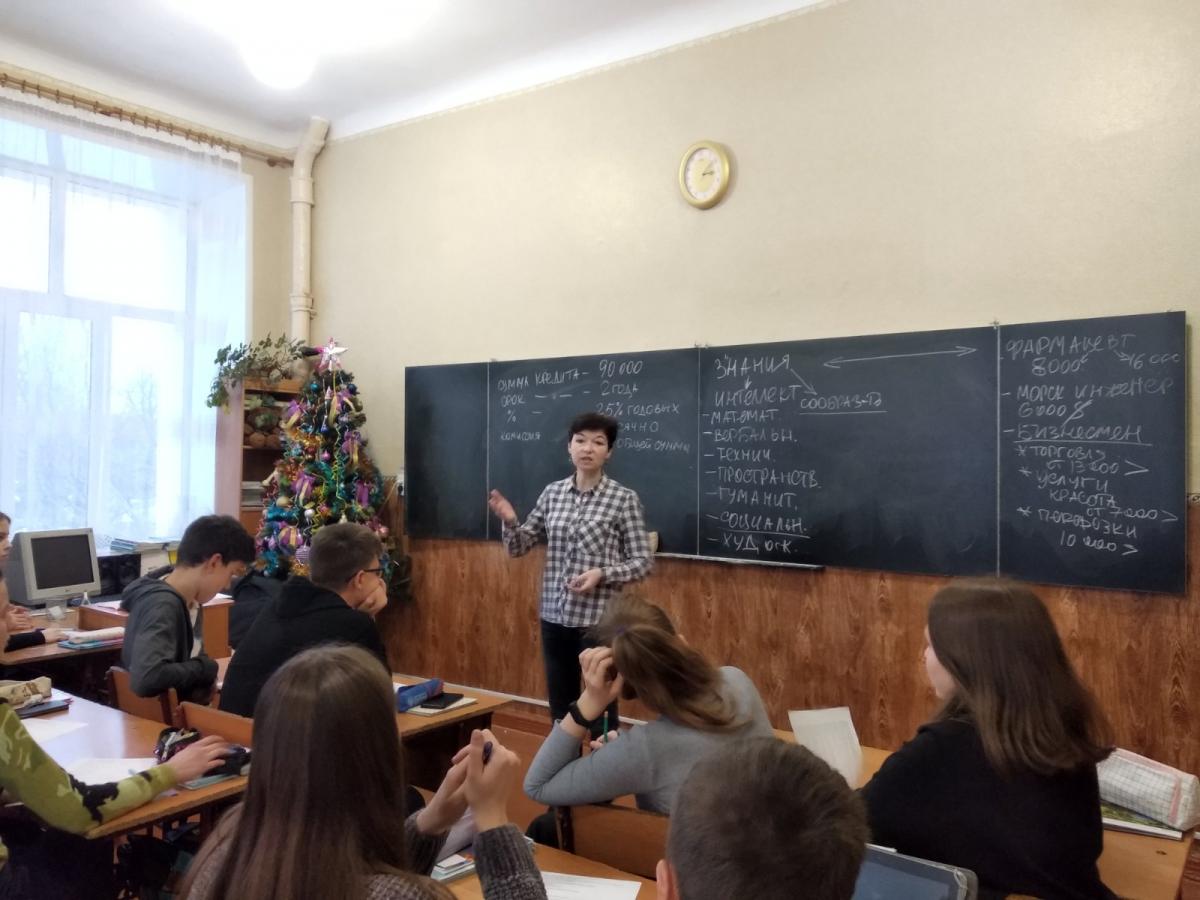 Дев’ятикласники разом з профконсультанткою центру зайнятості Оленою Бурлуцькою аналізували як співвідносяться між собою бізнес та інтелект.