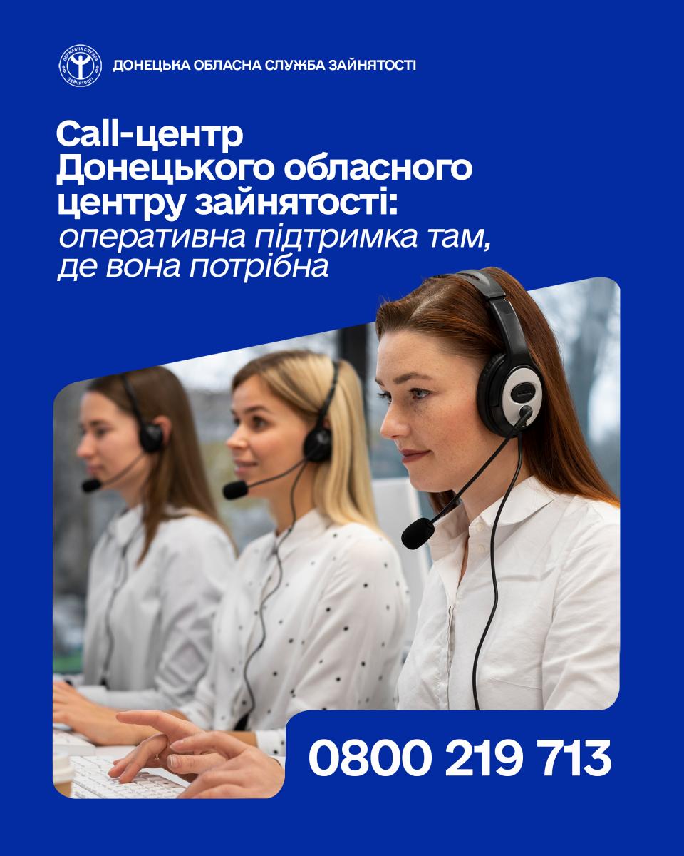 Якщо у вас є питання щодо працевлаштування, навчання чи взаємодії зі службою зайнятості — не зволікайте. Звертайтеся до call-центру Донецького обласного центру зайнятості за номером 0-800-219-713. Тут допомагають швидко, фахово й з повагою до кожного.
