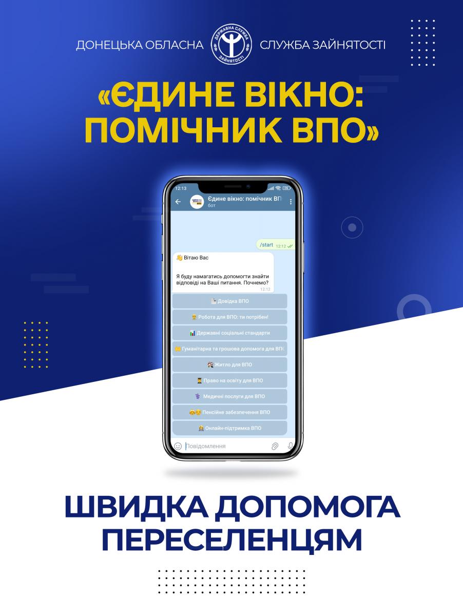 Чат-бот "Єдине вікно: помічник ВПО" – це зручний сервіс, що працює 24/7 і допомагає переселенцям швидко знайти важливу інформацію.