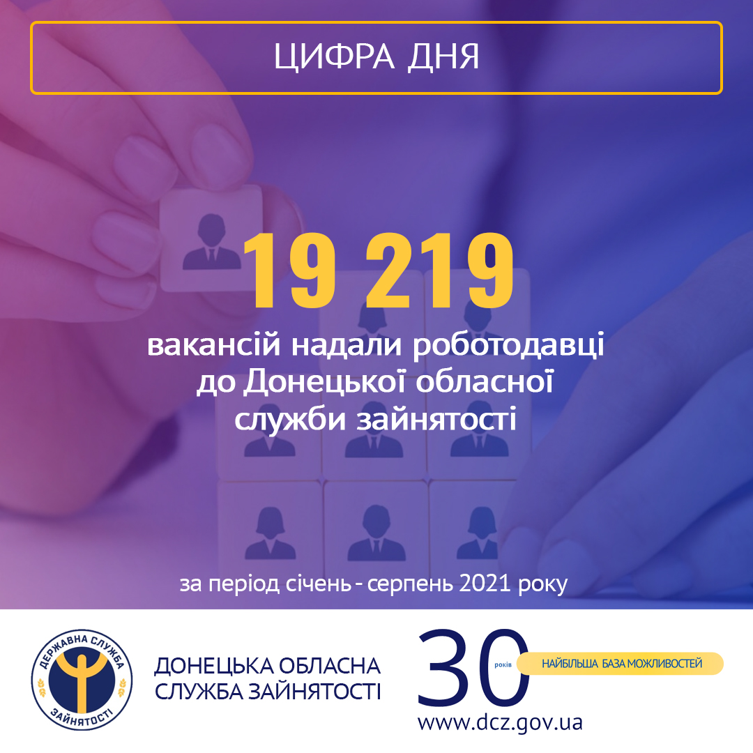 Протягом січня-серпня 2021 року майже 4,9 тис. роботодавців  надали інформацію про наявність 19 219 вакансій.