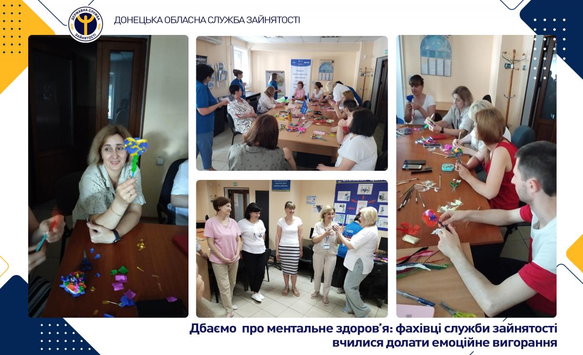 Робота спеціалістів служби зайнятості пов’язана з обслуговування людей, які опинились в стані безробіття, потребують психологічної підтримки та допомоги. Для якісної роботи фахівцю потрібно вислухати людину, зрозуміти її потреби і підібрати ефективні інструменти для вирішення запитів. Така діяльність має високий ризик емоційного вигорання, особливо в умовах воєнного стану. Саме тому спеціалістам служби дуже важливо дбати про своє ментальне здоров’я.