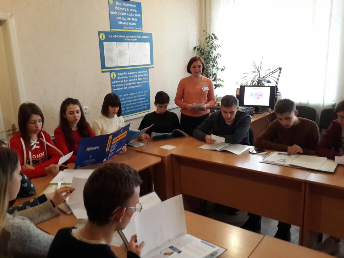 Для ознайомлення школярів з затребуваними на регіональному ринку праці професіями був організований перегляд тематичних відеороликів. Обговорення професійно важливих якостей пройшло в жвавій дискусії, а інформація про використання безкоштовного мобільного додатку «Центр профорієнтації» стала у нагоді не тільки учням, а й вчителям. Бажаючі пройти профдіагностичне тестування визначили свої професійні нахили за допомогою комп’ютерного діагностування.