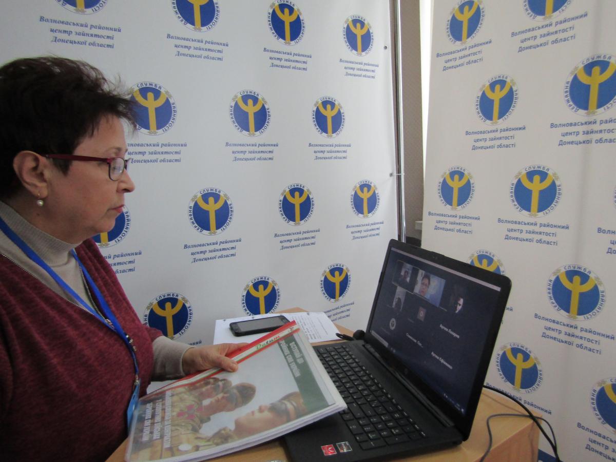 22 жовтня Волноваським районним центром зайнятості проведено онлайн конференцію за допомогою сервісу "Zoom" для учасників АТО/ООС, які перебувають на обліку в центрі зайнятості, за участю заступника військового комісара - начальника мобілізаційного відділення Волноваського РВК, Дмитра Климчука.