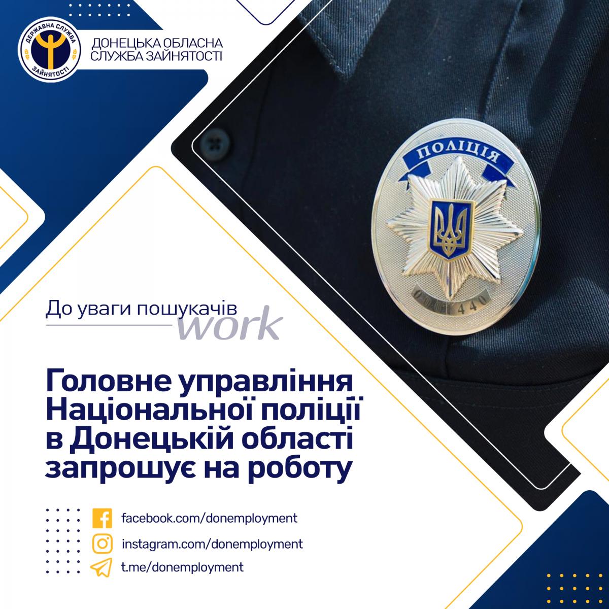Головне управління Національної поліції в Донецькій області запрошує на роботу працівників патрульної поліції.