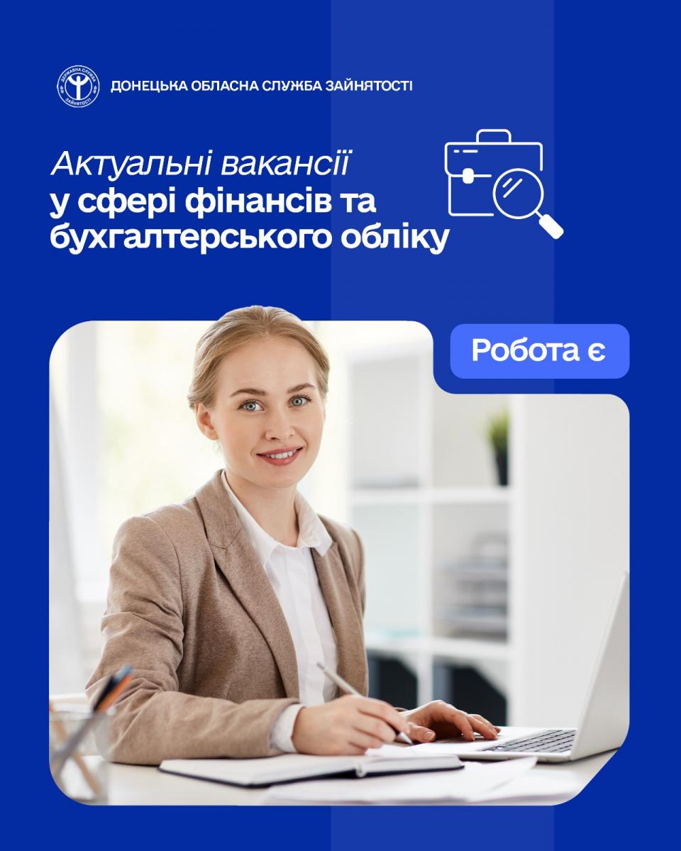 Роботодавці Донецької області запрошують фахівців у сфері фінансів та бухгалтерського обліку. Наразі відкрито такі вакансії: