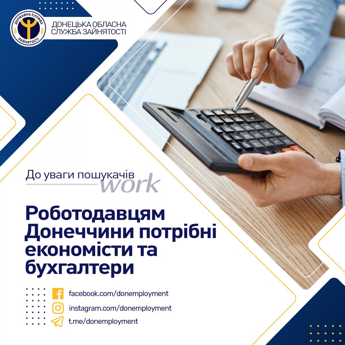 Роботодавцям Донецької області потрібні економісти та бухгалтери.