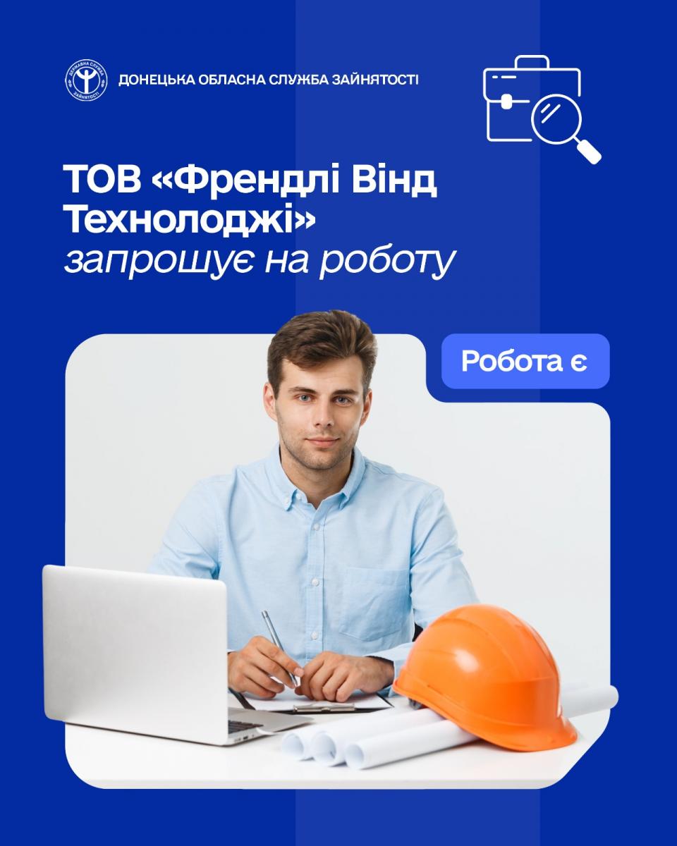 ТОВ «Френдлі Вінд Технолоджі», єдиний в Україні виробник мультимегаватних вітроустановок, запрошує на роботу фахівців: