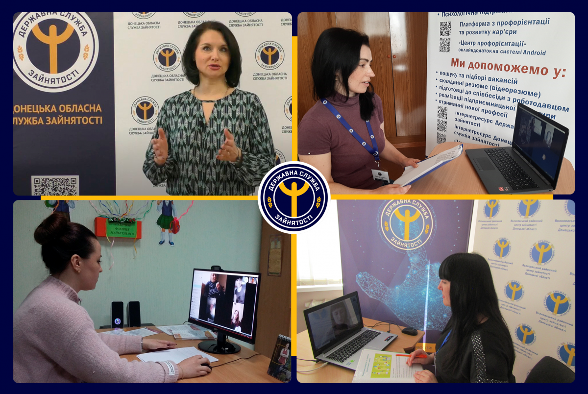 Фахівці служби зайнятості Донеччини проводять заходи з використанням сучасних онлайн ресурсів – Zoom, Skype та Facebook. Щоденно проходять різноманітні тренінги, семінари, ярмарки вакансій, співбесіди тощо. Перш за все такі заходи направлені на всебічну підтримку підприємців та шукачів роботи в кризовій ситуації, яка склалася на даний момент.