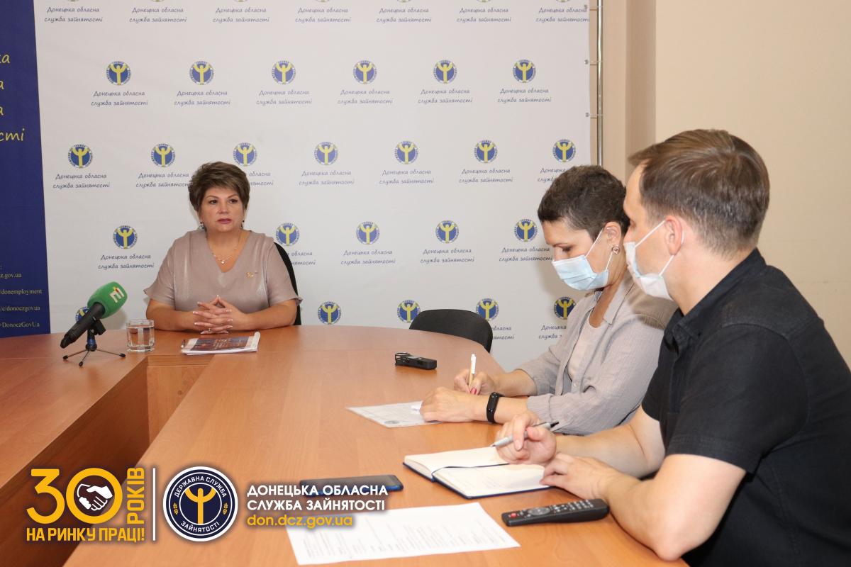 6 липня директор Донецької обласної служби зайнятості Валентина Рибалко провела пресконференцію на тему «Служба зайнятості на ринку праці: від посередництва до партнерства та соціальної підтримки». Під час заходу керівниця підвела підсумки роботи служби зайнятості Донеччини за перше півріччя поточного року і поінформувала про реалізовані проєкти.
