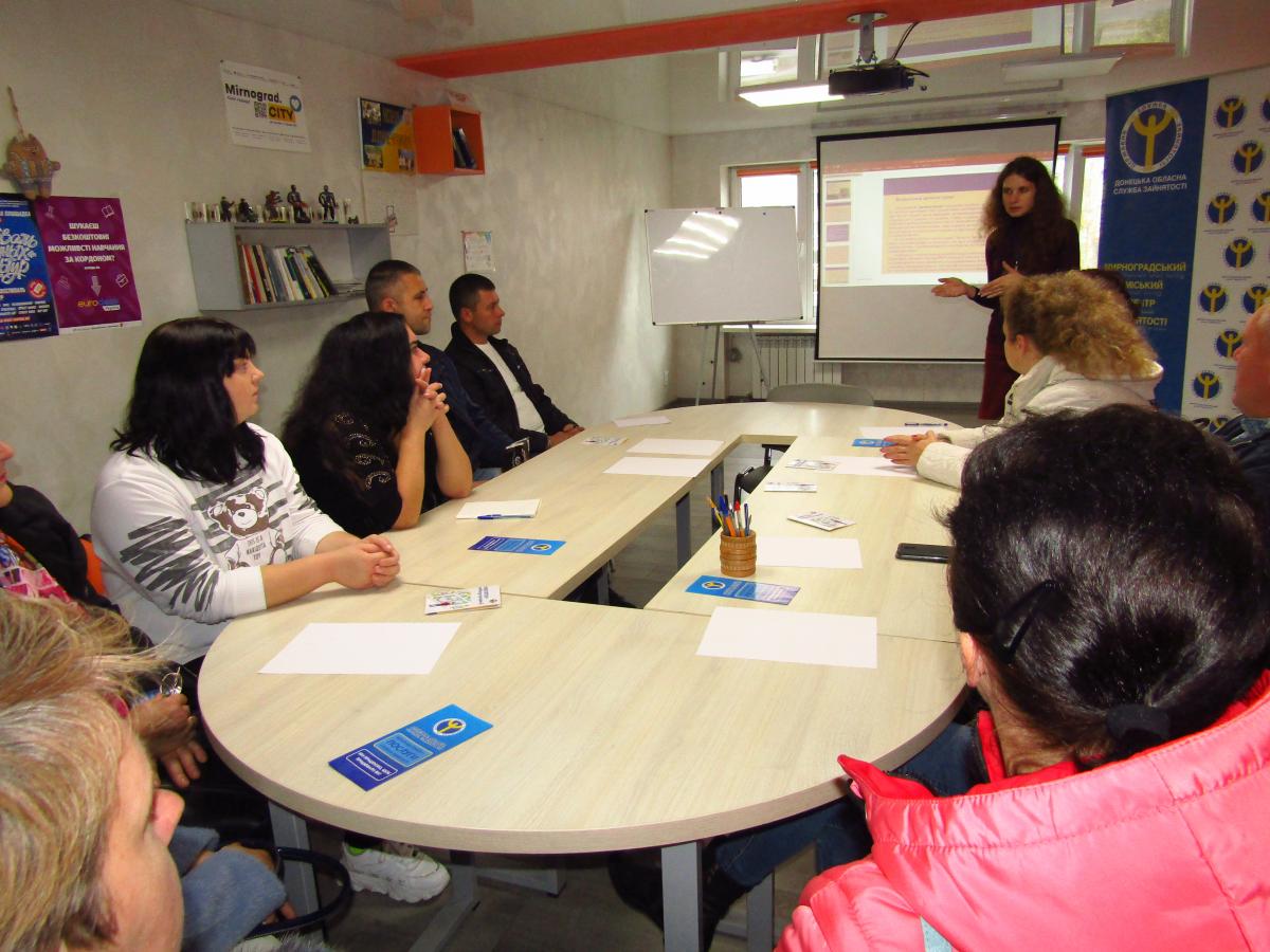 25 жовтня у Мирноградському міському центрі зайнятості пройшло засідання клубу «Свідоме батьківство». В засіданні взяли участь батьки з числа безробітних, які мають неповнолітніх дітей, яке відбулось в Молодіжному центрі «Рух».