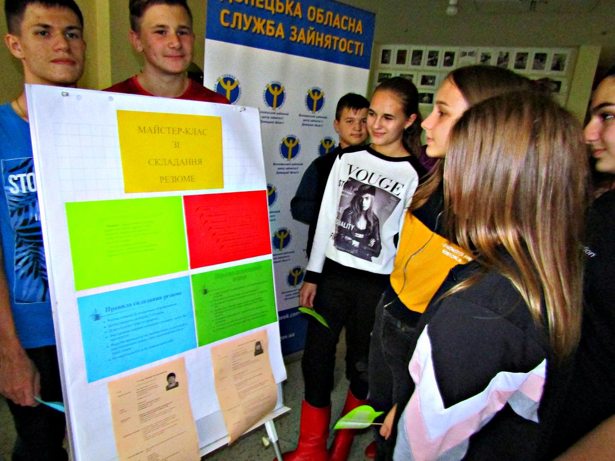 Також за допомогою майстер-класу зі складання резюме, діти навчились складати «Портфоліо кар'єрного просування» та дізнались про інноваційні проєкти служби зайнятості (бізнесшкола юних підприємців, Атлас професій майбутнього з доповненою реальністю, онлайн додатки на системі Android, в тому числі, «Центр професійної орієнтації»).