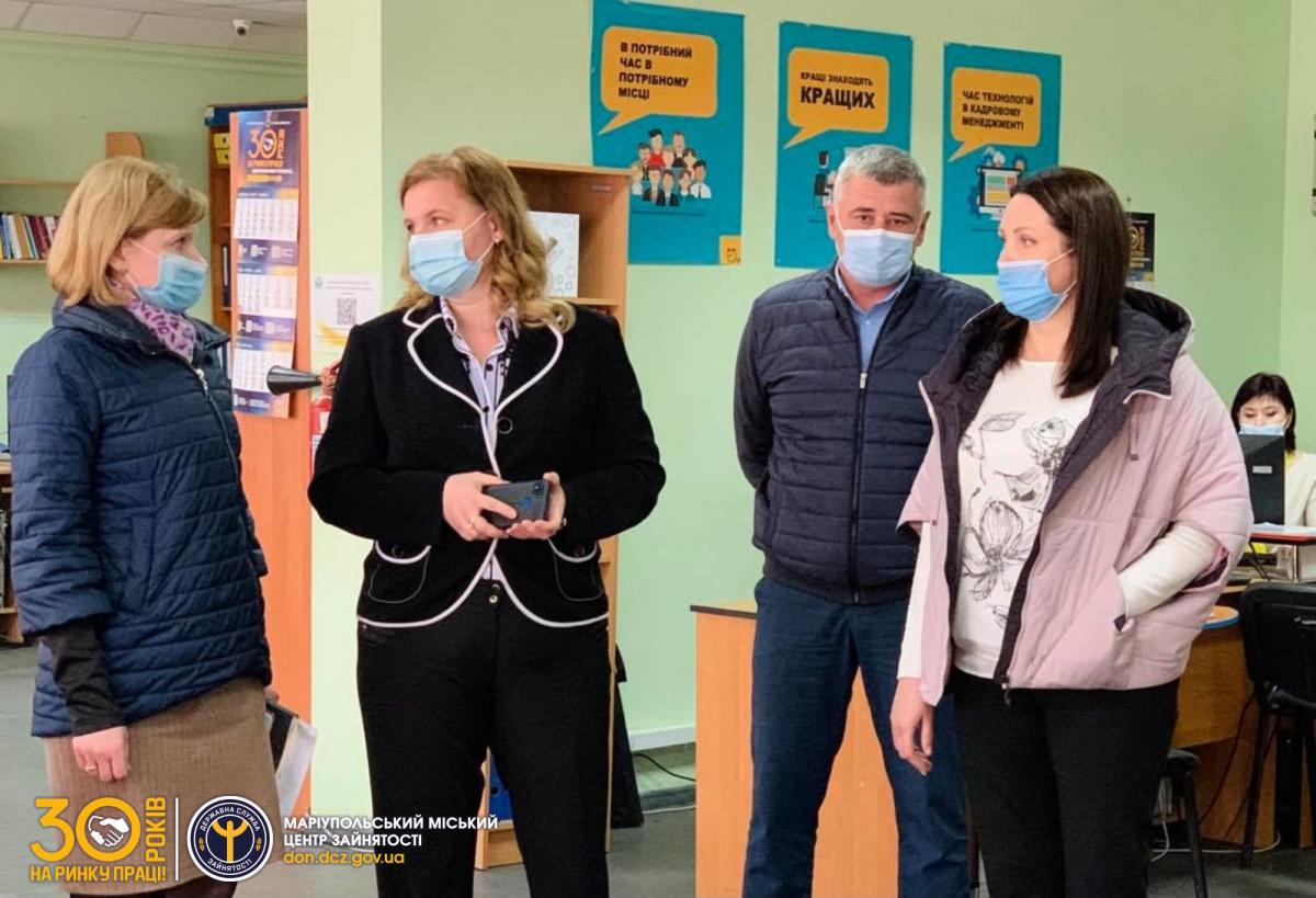 26 квітня відбулася робоча зустріч в.о.директора Маріупольського міського центру зайнятості Світлани Чернишової з головою та заступником голови Маріупольської районної державної адміністрації в Донецькій області Наталією Букрєєвою та Олексієм Воробйовим.