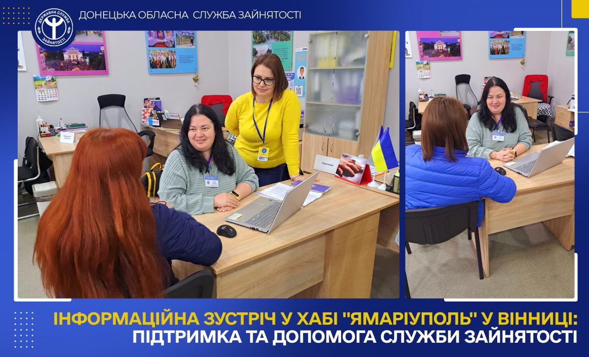 Донецький обласний центр зайнятості продовжує активно взаємодіяти з хабами «ЯМаріуполь», які працюють по всій країні, щоб допомагати внутрішньо переміщеним особам знайти роботу, адаптуватися до нових умов та розпочати нове життя.