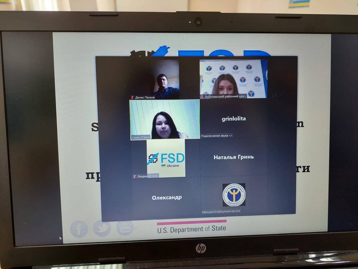10 червня у Волноваському районному центрі зайнятості за допомогою сервісу "ZOOM" пройшов вебінар за участі керівниці Волноваського Бюро безоплатної правової допомоги Олени Сеніч та представників фонду мінної небезпеки FSD (Швейцарський Фонд протимінної діяльності).