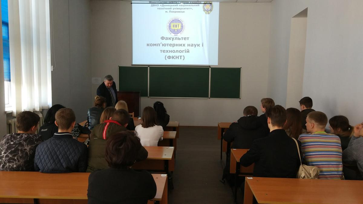 5 березня фахівці з профорієнтації Покровського міського центру зайнятості запросили випускників ЗОШ №2, ЗОШ №9 та НВК№1 на День відкритих дверей факультету комп’ютерних наук і технологій ДВНЗ «Донецький національний технічний університет».