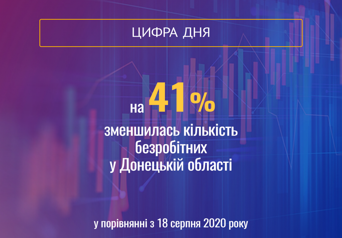 Станом на 18 серпня 2021 року кількість офіційно зареєстрованих безробітних в центрах зайнятості Донецької області склала 12,4  тисячі осіб. Це на 41% або на 8,6 тисяч менше ніж станом на 18 серпня 2020 року.