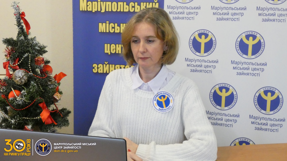 В.о.директора Маріупольського міського центру зайнятості Світлана Чернишова розповіла присутнім про напрямки роботи служби зайнятості, досягнення та здобутки 2021 року. Акцентувала увагу на унікальних можливостях та сучасних сервісах державної служби зайнятості. Презентувала нові розширені клієнтоорієнтовані послуги центру зайнятості, які впроваджені в рамках реалізації експериментального проекту.